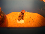 with bird sand.